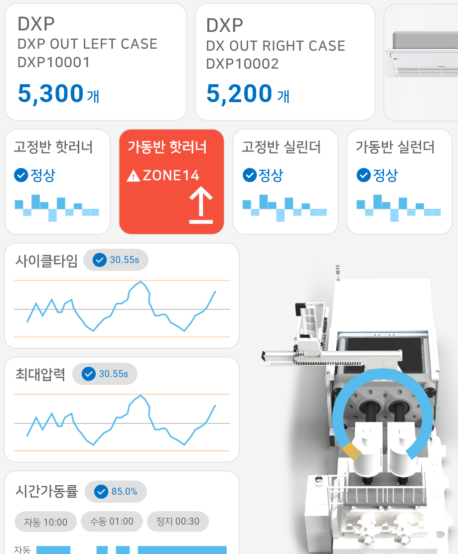 설비 고장이나 금형 마모로 인한 품질 저하를 막기 위해, 사전 예방 보전 시스템이 있습니다.