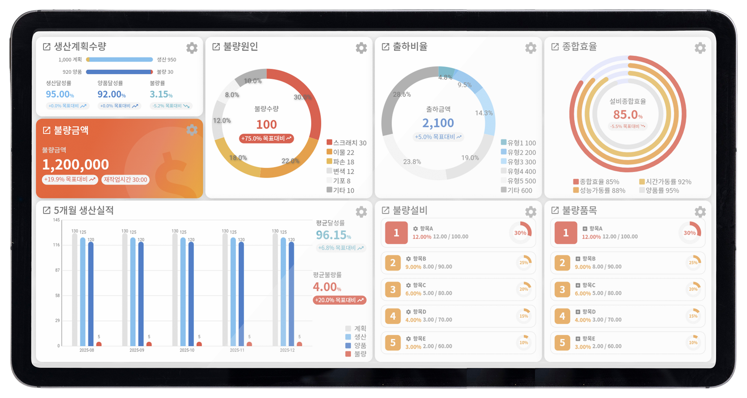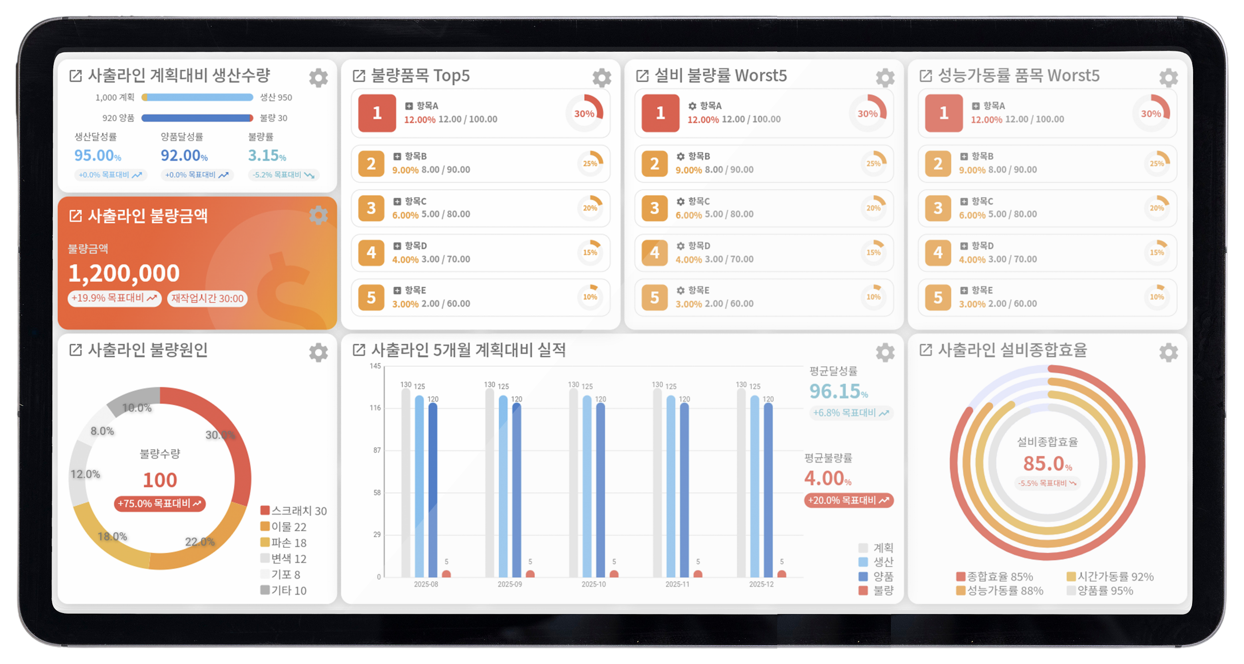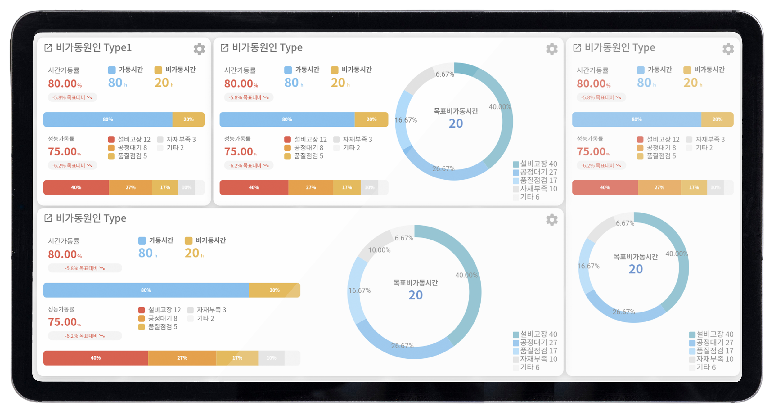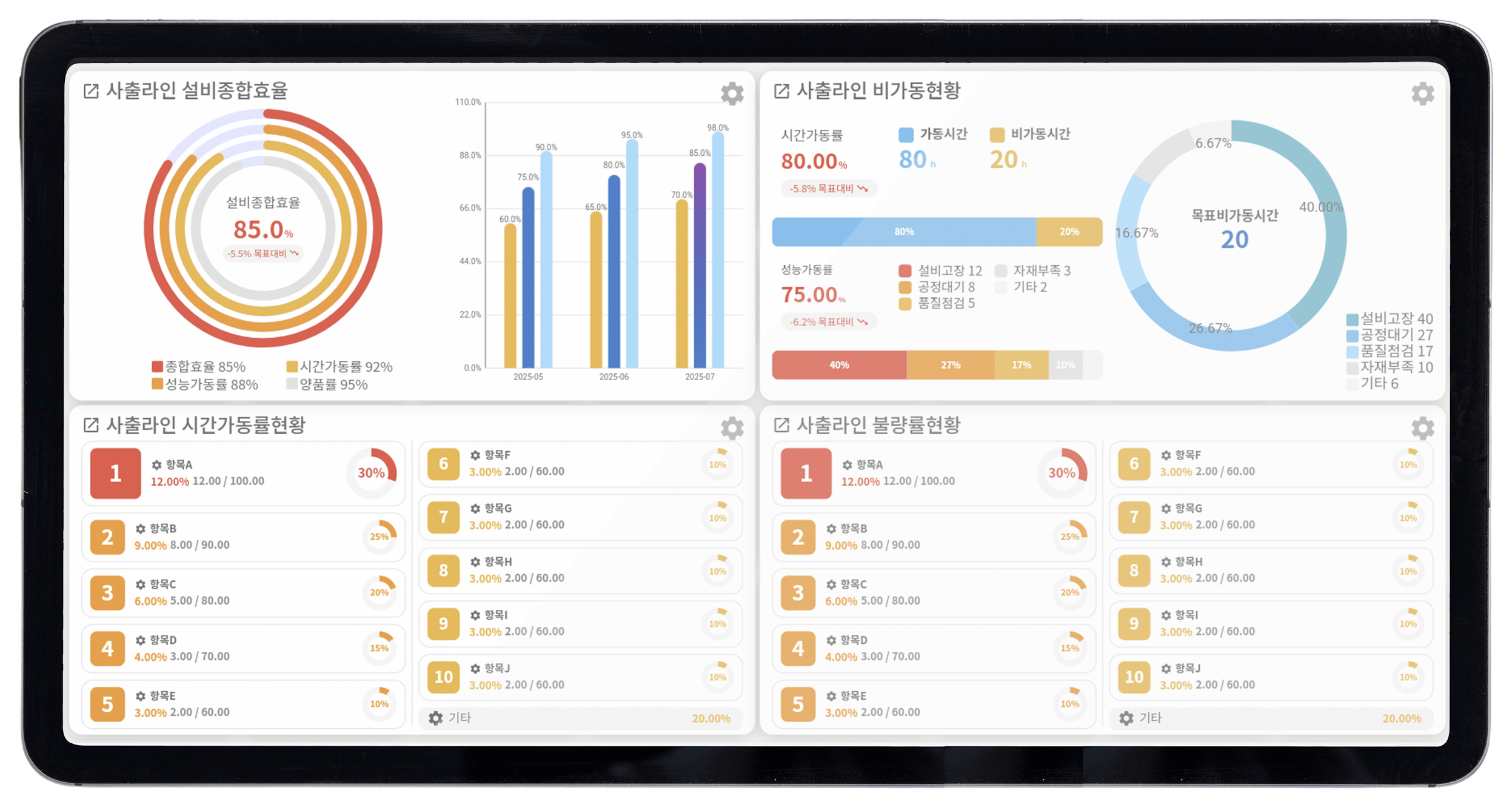 모든 지표를 시각화하여 현재 공장 상태를 투명하게 파악할 수 있습니다.